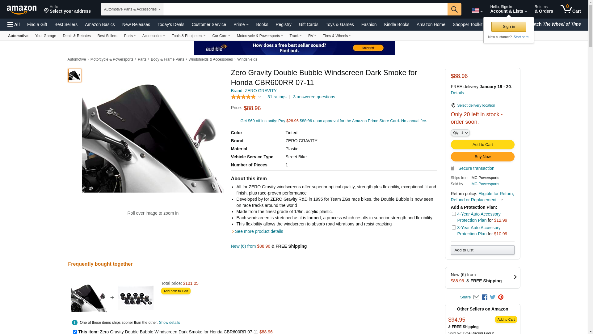 All Zero Gravity windscreens offer superior optical quality, strength plus flexibility, exceptional fit and finish, plus race-proven performance<br/>Developed by Zero Gravity R&D in 1995 for Team ZGs race bikes, the Double Bubble is now seen on race tracks around the world<br/>Made from the finest grade of 1/8in. acrylic plastic. Each windscreen is stretched as it is formed, a process which results in superior strength and flexibility. This flexibility allows the windscreen to absorb road vibrations and resist cracking<br/>Formed with a wedge-shaped bubble in the center of the windscreen, the Double Bubble was originally designed to provide superior 'rodynamics for a rider tucked in behind the windscreen<br/>Adds a sleek, 'rodynamic look to the exciting designs of todays new sportbikes
