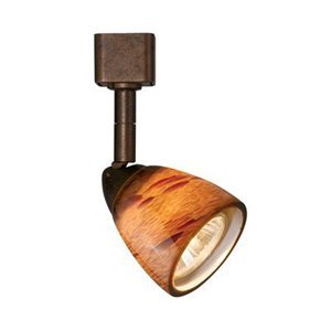 Features. Voltage - 120v. Finish - White. Glass - with Amber Spotted. Lamp Type - GU10. Wattage - 50 watts. Material - Glass. Bulb Type - Halogen. Shape - Track Head