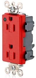 Leviton M1626-PLR 5-15R Lev-Lok Modular Decora Plus Duplex Receptacle Extra Heavy Duty Hospital - Red (Pkg of 10)