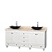 Wyndham Collection Acclaim 72 inch Double Bathroom Vanity in White, Ivory Marble Countertop, Arista Black Granite Sinks, and No Mirrors