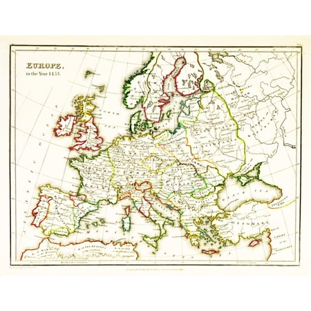 Europe Map After Fall of Constantinople 1453 Rolled Canvas Art - Science Source (36 x 24)