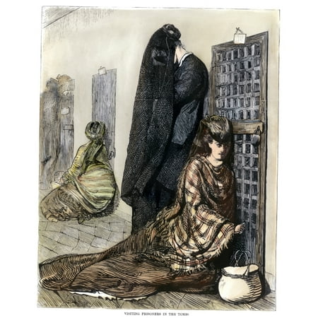 Prison The Tombs 1870 Nwomen Visiting Prisoners In The Tombs New York City Colored Wood Engraving American 1870 Rolled Canvas Art - (18 x 24)