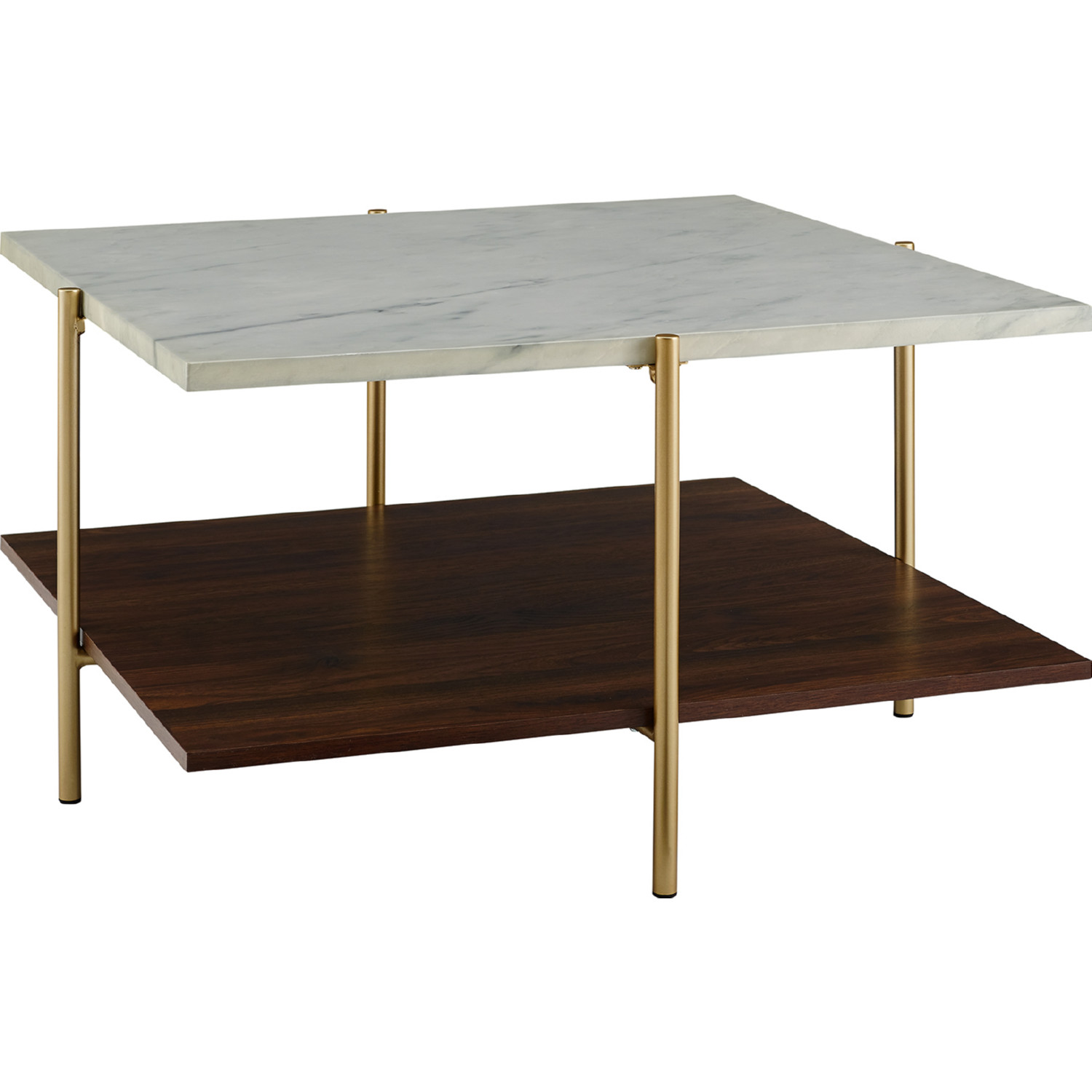 Walker Edison AF32SSQCTMGD Mid Century Modern Coffee Table in White Faux Marble & Gold
