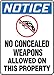 - "Notice No Concealed Weapons Allowed On This Property" safety sign printed in OSHA-compliant colors