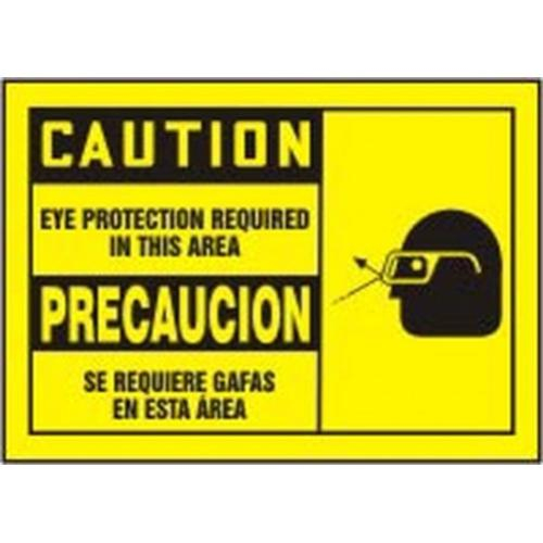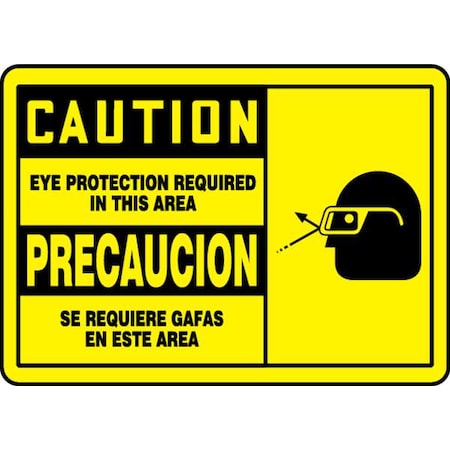Accuform SBMPPE414MVA Aluminum Sign, Legend"Caution Eye Protection Required in This Area/PRECAUCION SE REQUIERE GAFAS", 7" Length x 10" Width, Black on Yellow