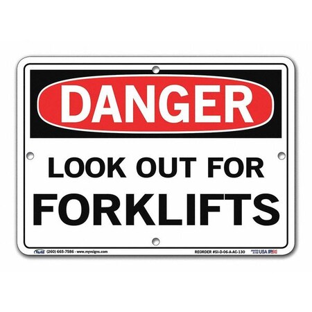 Vestil SI-D-06-A-AC-130 LOOK OUT FOR FORKLIFTS Danger Sign, Aluminum Composite, 0.130" Overall Size, 10.5" W x 7.5" H