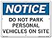 Vestil SI-N-67-C-AL-063 Notice Sign Aluminum .063" Overall Size Do Not Park Personal Vehicles on Site , 10.5" Height, 14.5" Wide, 0.063" Length