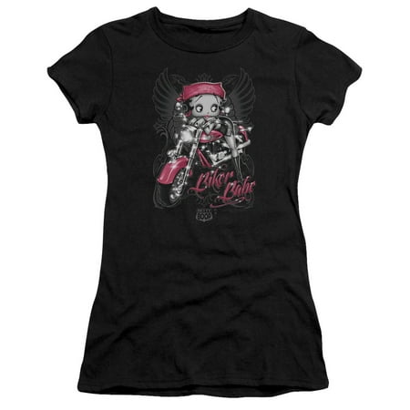 Trevco Boop-Biker Babe - Short Sleeve Junior Sheer Tee - Black, Large