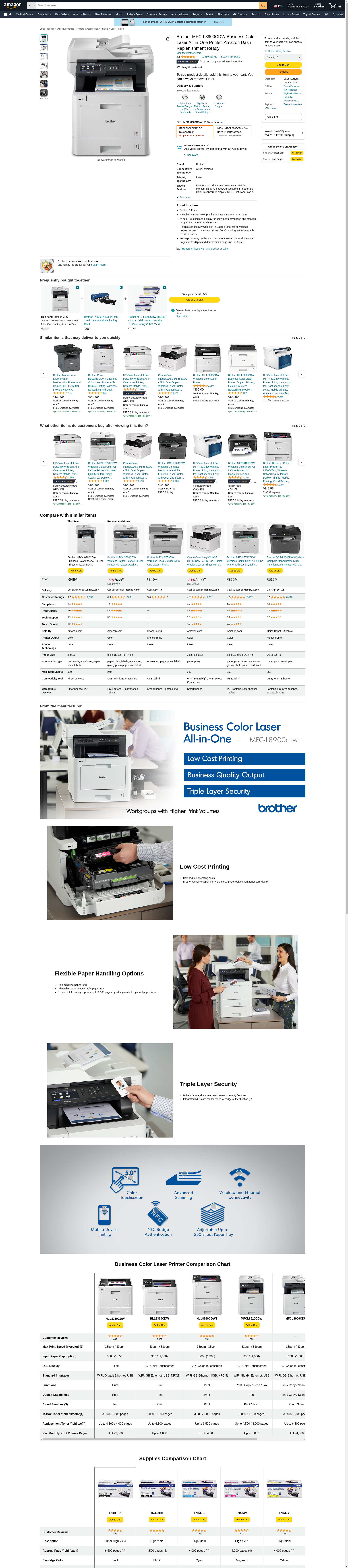 Brother MFC-L8900CDW Business Color Laser All-in-One Printer, Amazon Dash Replenishment Ready