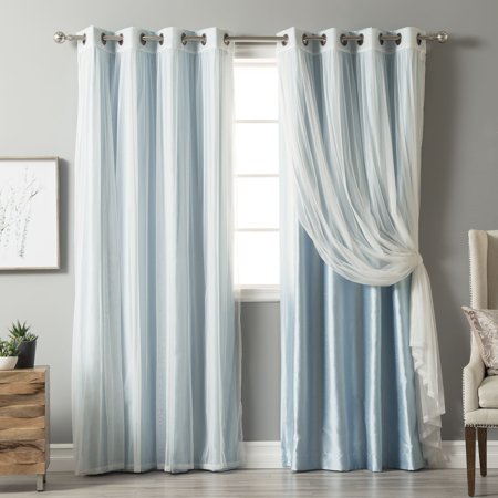 <ul> <li>Bring a touch of glamour into your home with this impressive faux silk curtain set.</li> <li>Featuring a flattering gathered top on the tulle lace, these curtains provide an aura of mystique while blocking out excess light. </li> <li>A blackout lining makes the curtain panels a useful addition to a bedroom to block unwanted morning light. </li> </ul>