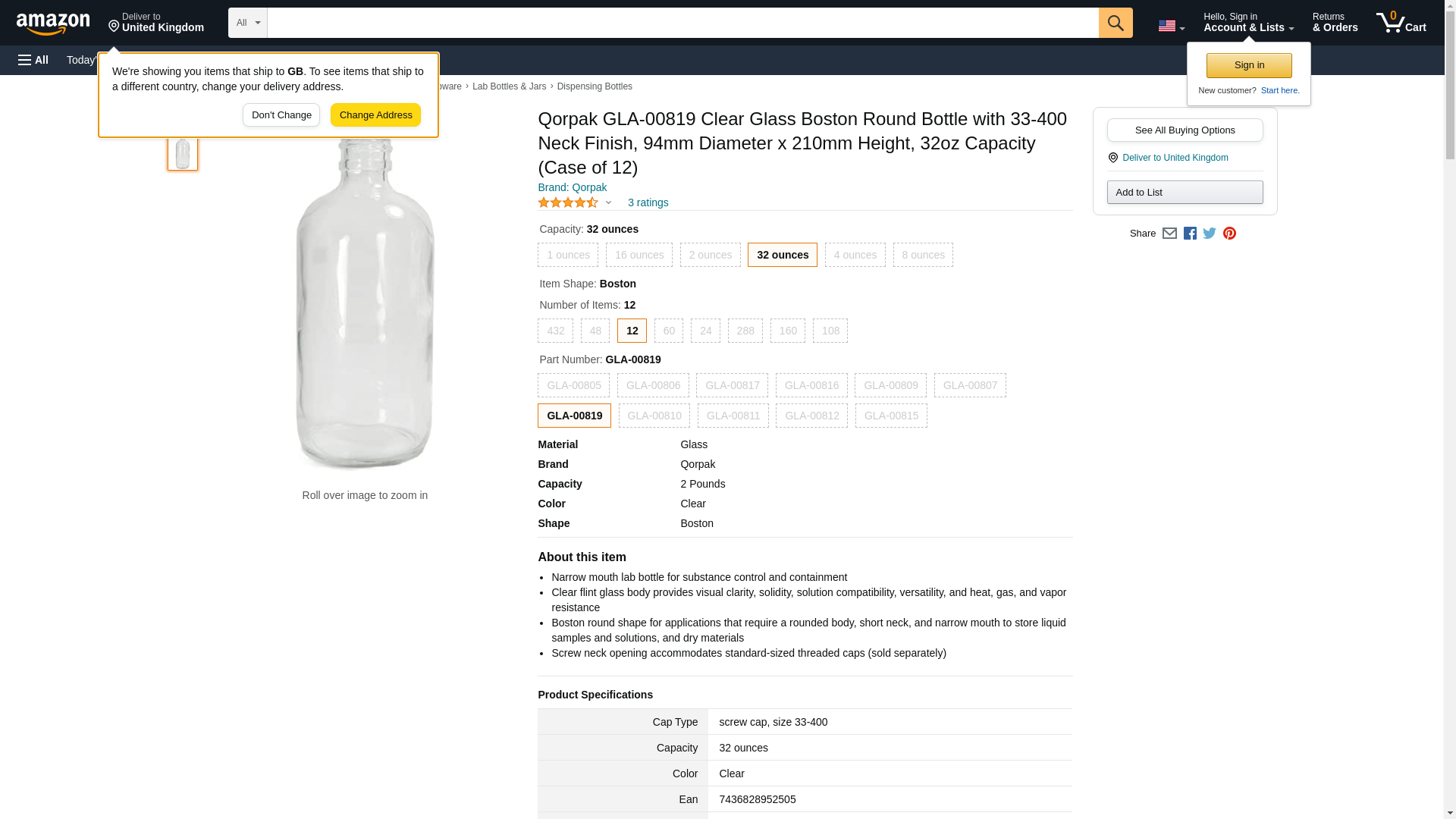 | Feature | Price For: Each Capacity: 32 oz. Basic Material: Glass Item: Bottle Graduation Range: Not Specified Height: 210mm Sub-Category: Bottles Mouth: Narrow Screw Closure Size: 33-400mm Closure Material: Not Included Diameter: 94mm Body Color: Clear Shape: Boston Round Body Material: Glass Country of Origin (subject to change): Multiple |