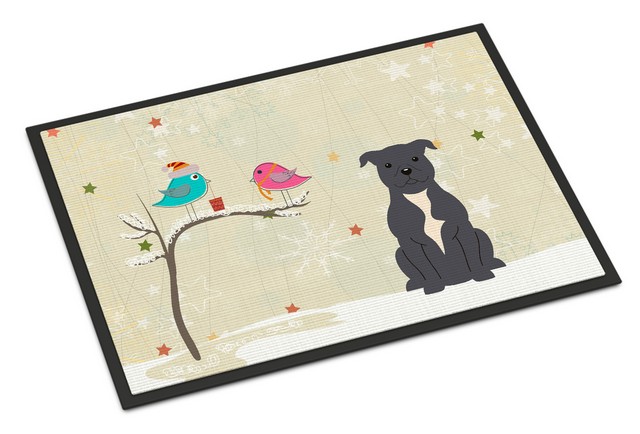 Carolines Treasures BB2518MAT Christmas Presents Between Friends Staffordshire Bull Terrier Blue Indoor or Outdoor Mat&#