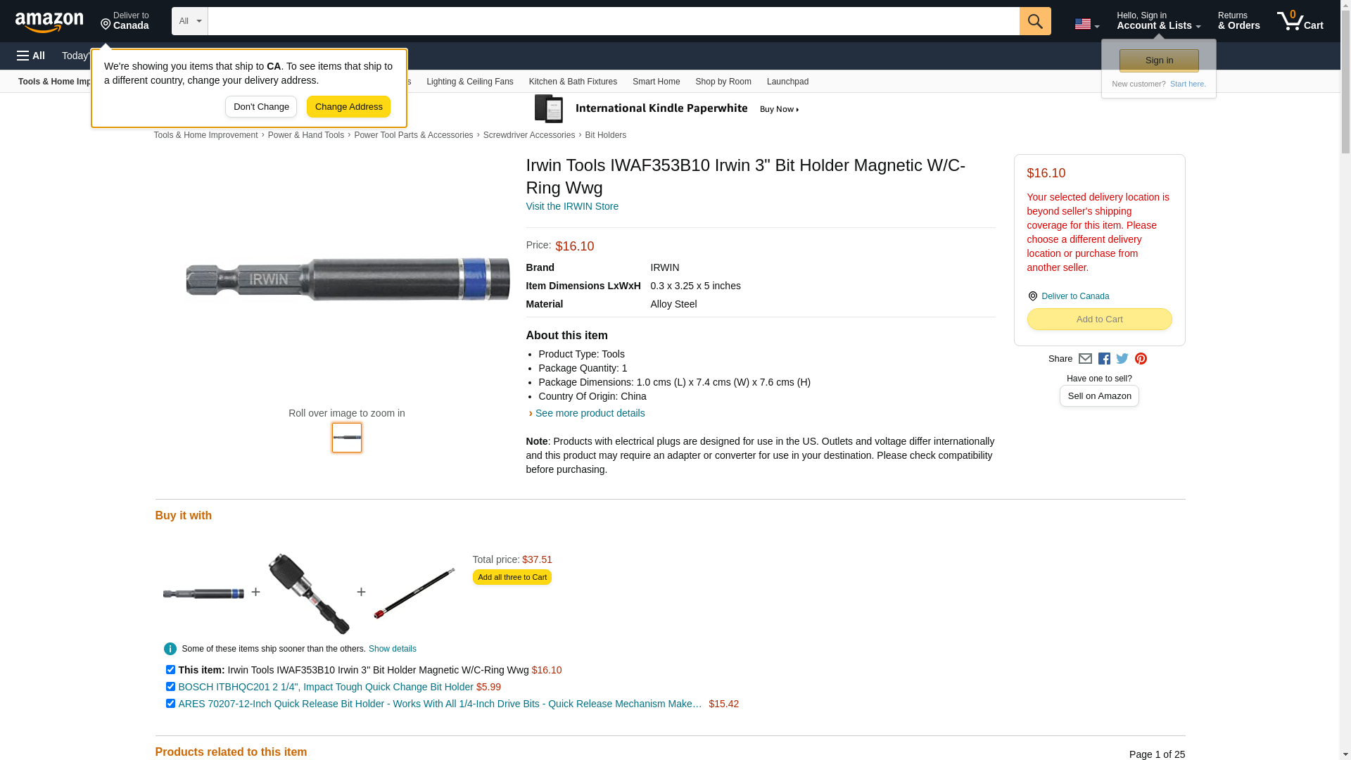 Irwin Tools IWAF353B10 Irwin 3" Bit Holder Magnetic W/C-Ring Wwg
