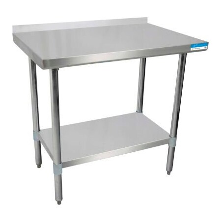 BK Resources 430 Stainless Steel Table, 30 x 24", Undershelf, 1-1/2" Backsplash, 18 Gauge