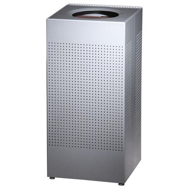 - Perforated heavy-gauge steel receptacle is fire safe. Stainless steel finish is durable and resists corrosion and rust.
