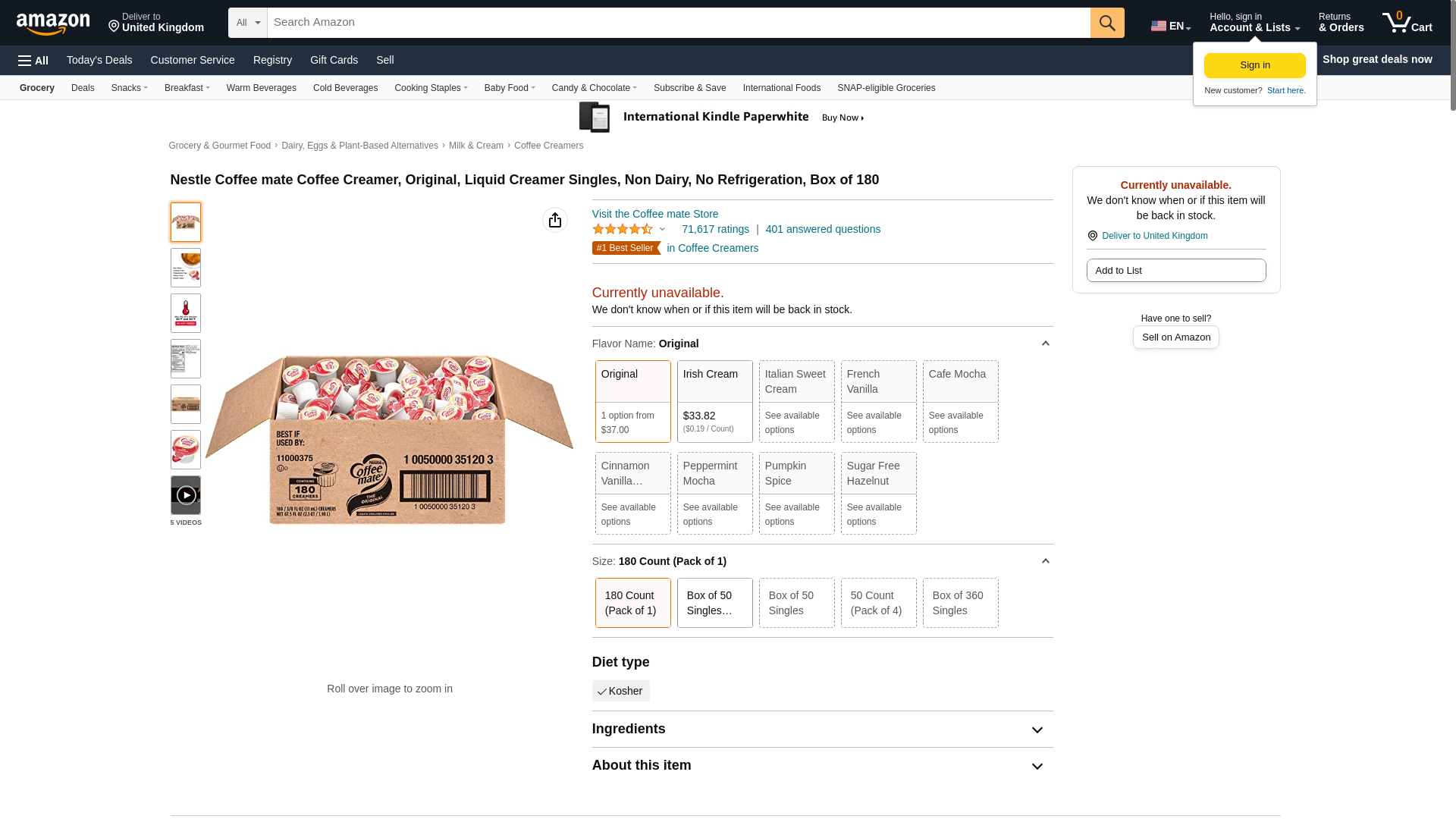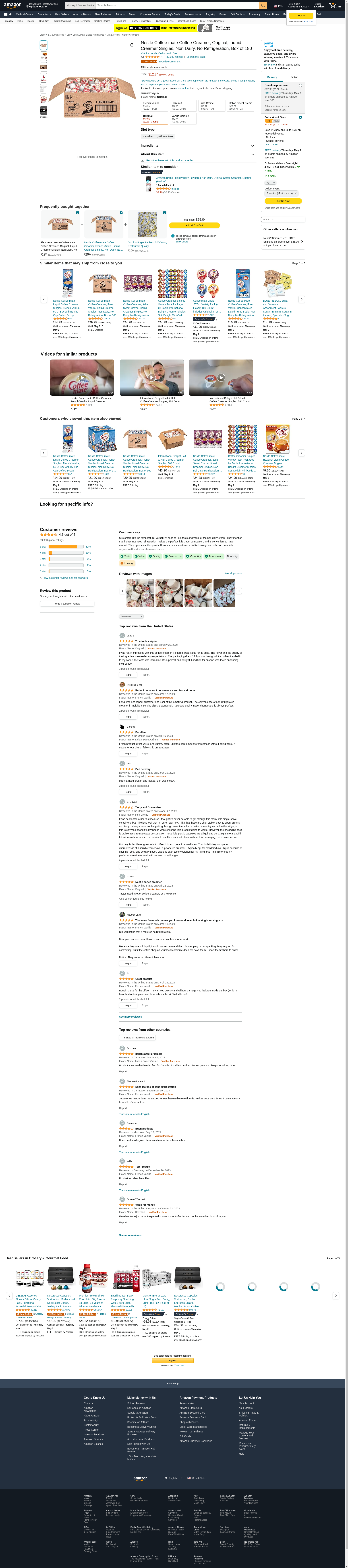 NESTLE COFFEE-MATE Coffee Creamer, Original, liquid creamer singles, Pack of 180