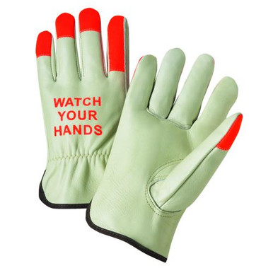 Fluorescent Orange Finger Tips - Grain Cowhide Keystone Thumb Driver Glove - Standard Grade 995KOT/M - First Industrial Supplies