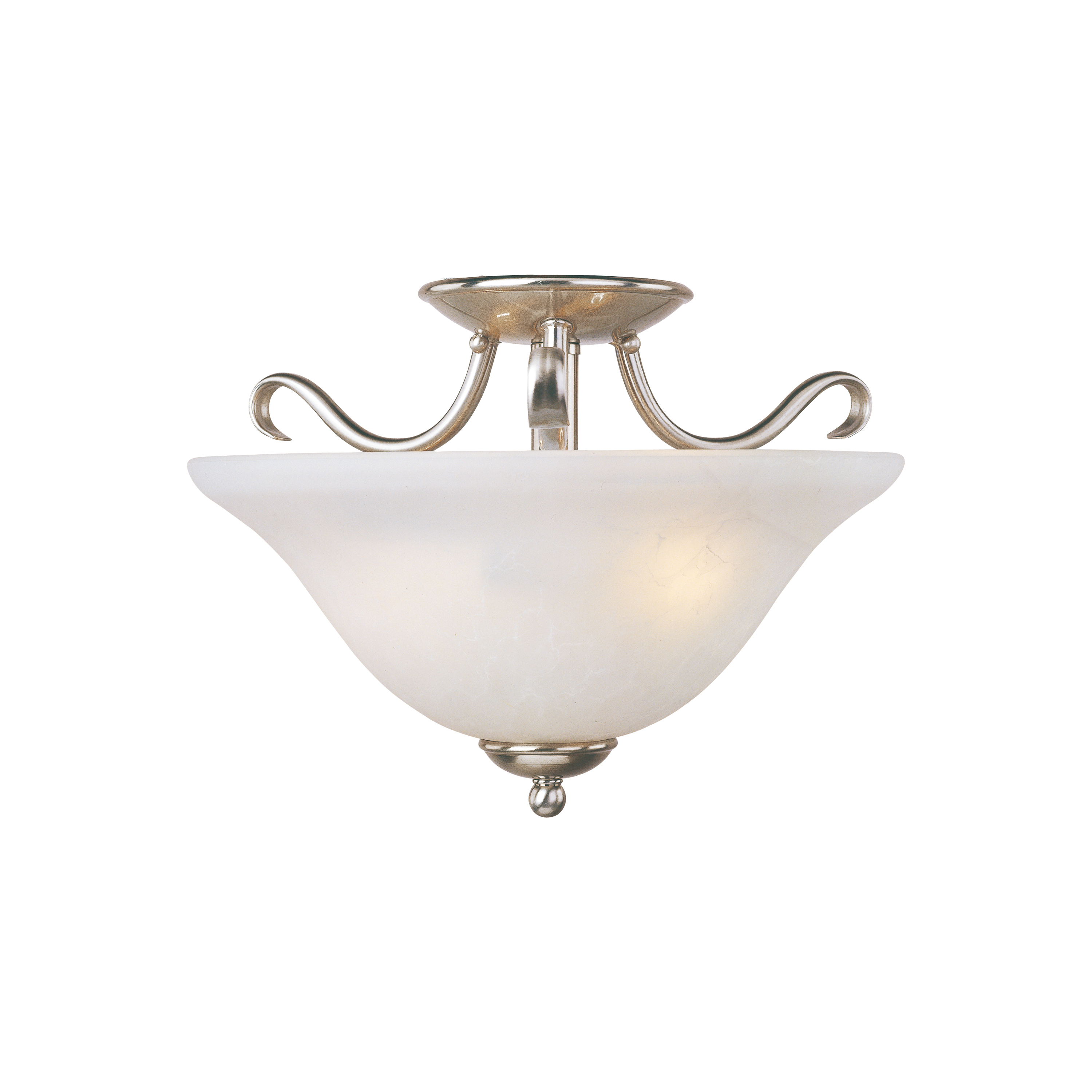 Maxim 10120ICSN Basix Ice Glass Round Semi Flush Ceiling Light, 2-Light 120 Total Watts, 10"H x 14"W, Satin Nickel