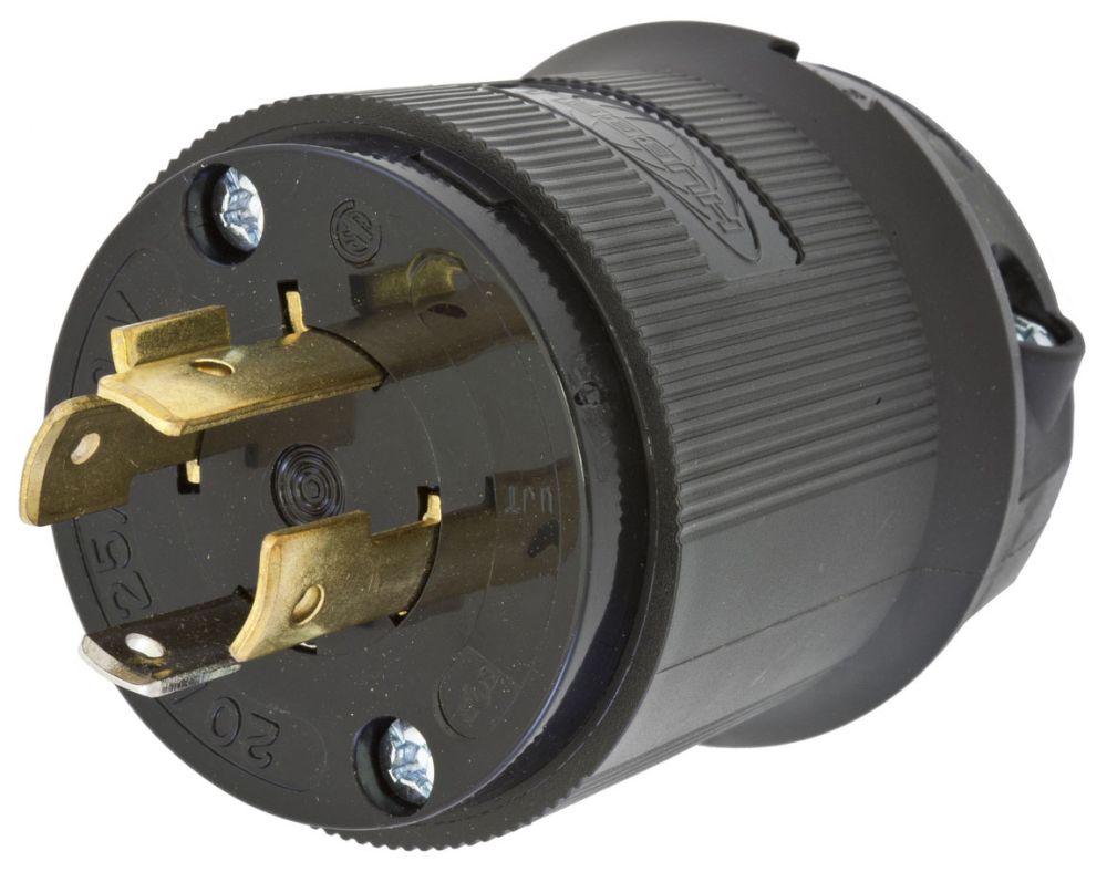 Hubbell HBL2411BK Locking Plug, 20 amp, 125/250V, L14-20P, Black