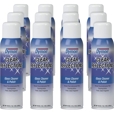 Dymon Clear Reflections Aerosol Glass Cleaner - Aerosol - 0.16 gal (20 fl oz) - 12 / Carton - Blue, Silver, Crystal Clear