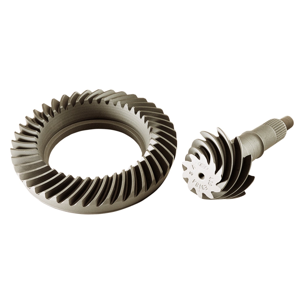 No one does 8.8" gears better than Ford Racing...stronger and quieter! The 8.8" rear end has been the standard in performance since its introduction in the Mustang in 1986 and Ford Racing is the manufacturer of choice when it's time to hop-up your axle. Fits any Ford with an 8.8" rear end until 2014. Does not fit 2015+. Made in the United States at Ford's Sterling Axle Plant (competitors in this price range are primarily produced in China) OEM quality - our superior surface finish, hardening, and manufacturing consistency provide the strongest and quietest 8.8" gears in the market! These are the same units that have 100,000 mile warranties in our production cars. Higher quality gears means more satisfied customers! Race Proven - Ford Racing 8.8" gears are the choice of championship road racing and drag racing teams including Multimatic Motorsports and Kurgan Motorsports. When your plans call for an 8.8" gear, look for the only brand good enough to wear the Ford oval! Includes Ford pinion nut and Ford crush sleeve.