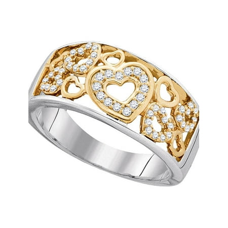 10kt Two-tone Gold Womens Round Diamond Heart Love Band Ring 1/5 Cttw