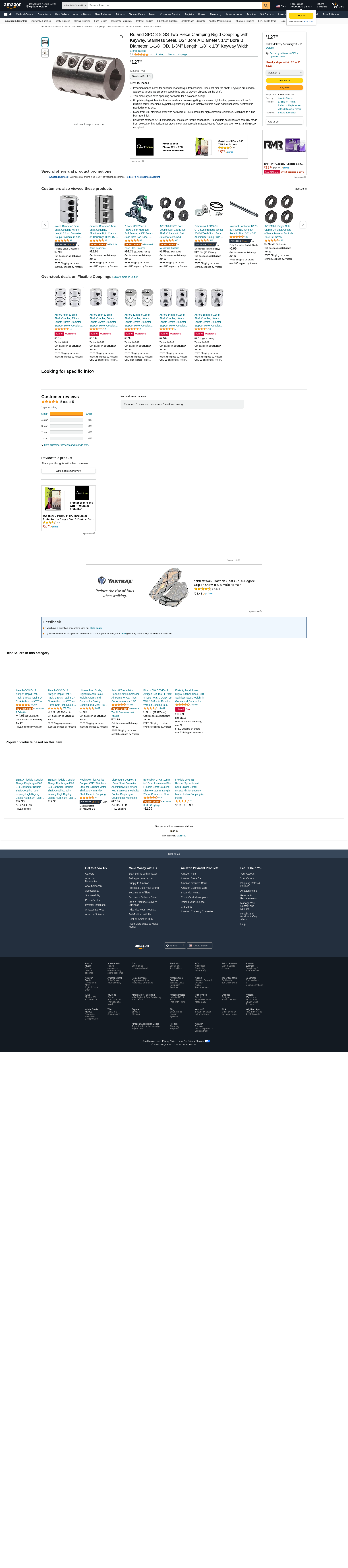 Ruland SPC-8-8-SS Two-Piece Clamping Rigid Coupling with Keyway, Stainless Steel, 1/2" Bore A Diameter, 1/2" Bore B Diameter, 1-1/8" OD, 1-3/4" Length, 1/8" x 1/8" Keyway Width