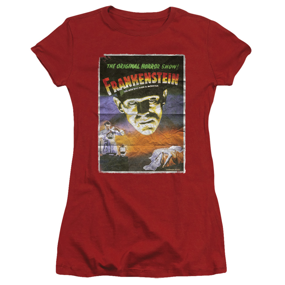 Trevco UNI1261B-JS-2 Universal Monsters & Frankenstein One Sheet-Short Sleeve Junior Sheer T-Shirt, Cardinal - Medi