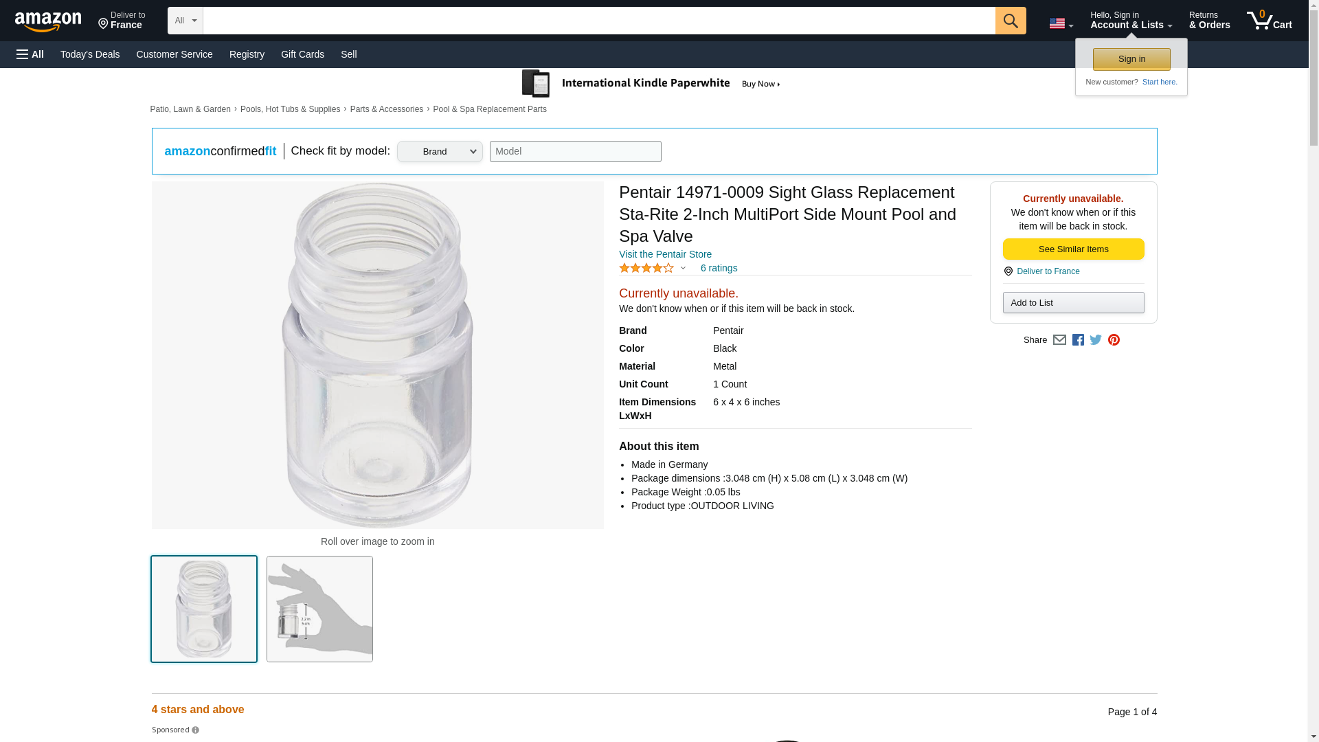 Pentair 14971-0009 Sight Glass Replacement Sta-Rite 2-Inch MultiPort Side Mount Pool and Spa Valve