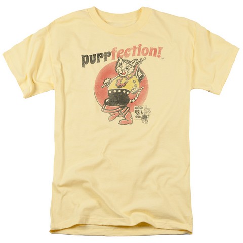 Trevco Puss N Boots-Purrfection Short Sleeve Adult 18-1 Tee, Banana - Small