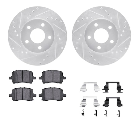 Dynamic Friction Company Front Brake Rotors-Drilled and Slotted-Silver with 3000 Series Ceramic Brake Pads includes Hardware 7312-47051