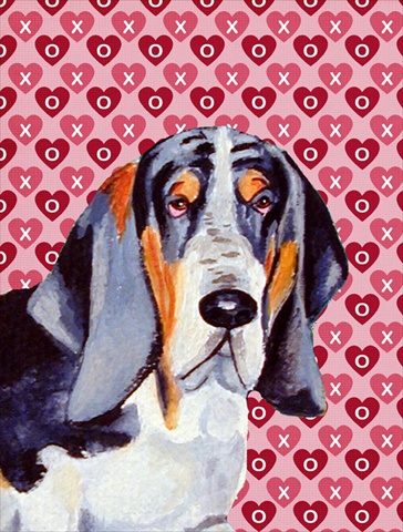 Caroline's Treasures LH9147CHF Basset Hound Hearts Love and Valentine's Day Portrait House Flag Large Porch Sleeve Pole Decorative Outside Yard Banner Artwork Wall Hanging, Polyester, House Size, Mult
