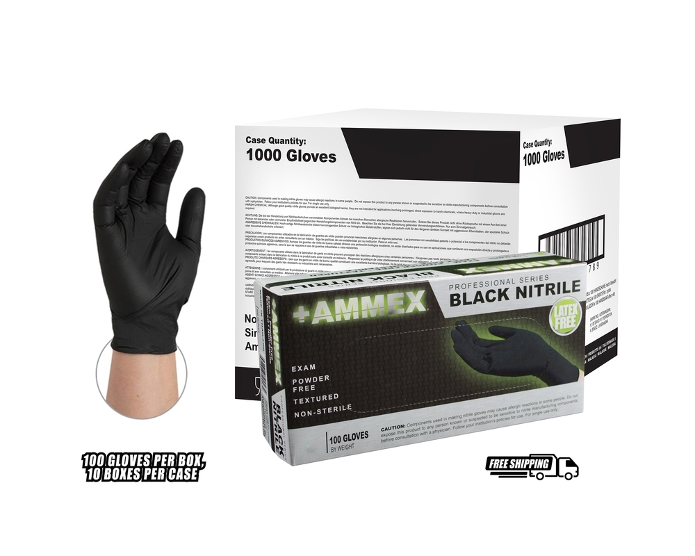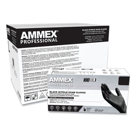 Ammex Black Nitrile Disposable Exam Gloves, 3 Mil, Latex & Powder Free, Textured, Large, Case of 1000