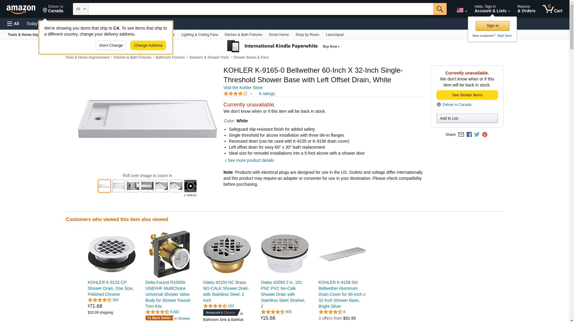 - Recessed drain (can be used with K-9155 or K-9156 drain cover)