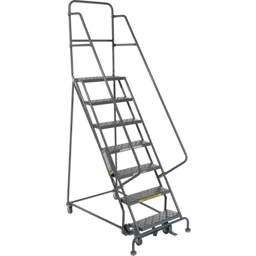 Tri-Arc KDSR107246-D2 7-Step 20" Deep Top Steel Rolling Industrial & Warehouse Ladder with Handrails, 24" Wide Perforated Tread