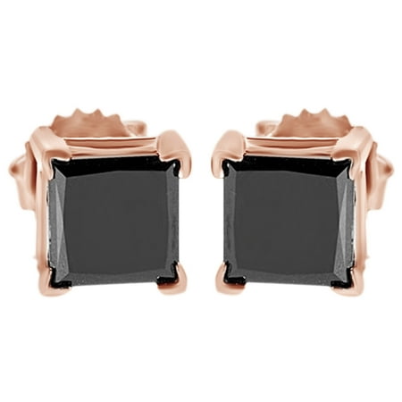 <ul> <li>Metal : Rose Gold With 14K Metal Stamp</li> <li>Stone: Black Diamond</li> <li>Stone Color: black, Stone Clarity: I2</li> <li>Total Carat Weight: 2.5 Ct, Stone Shape: Princess Cut</li> <li>Back Finding: screw back</li> </ul>
