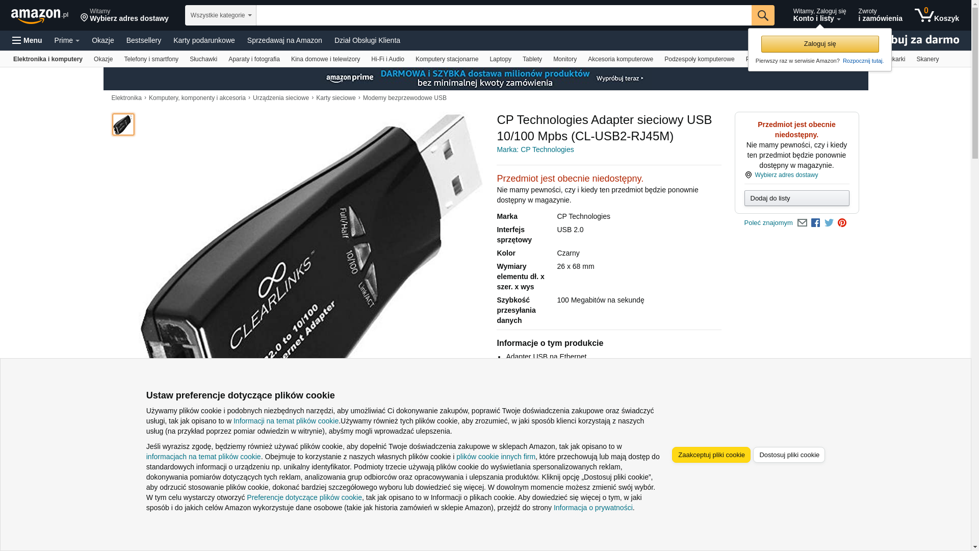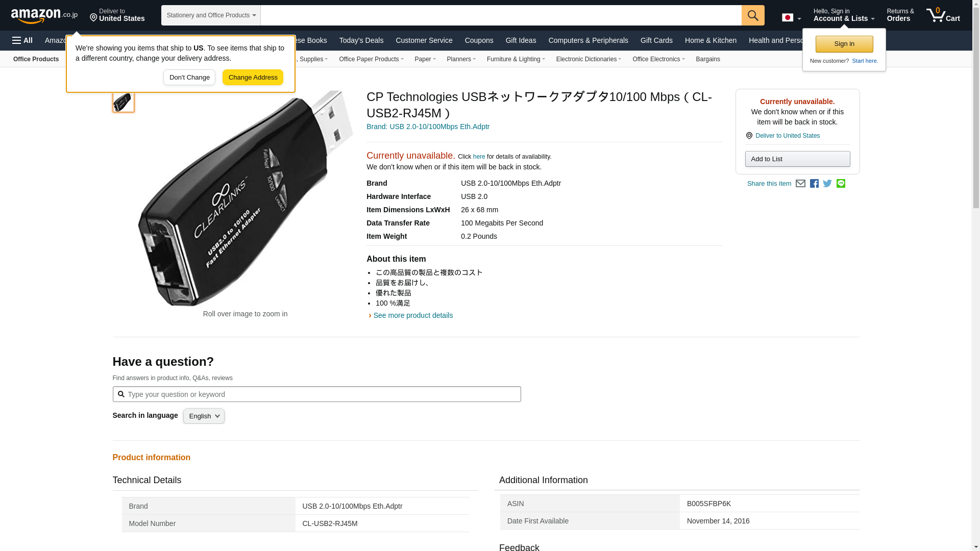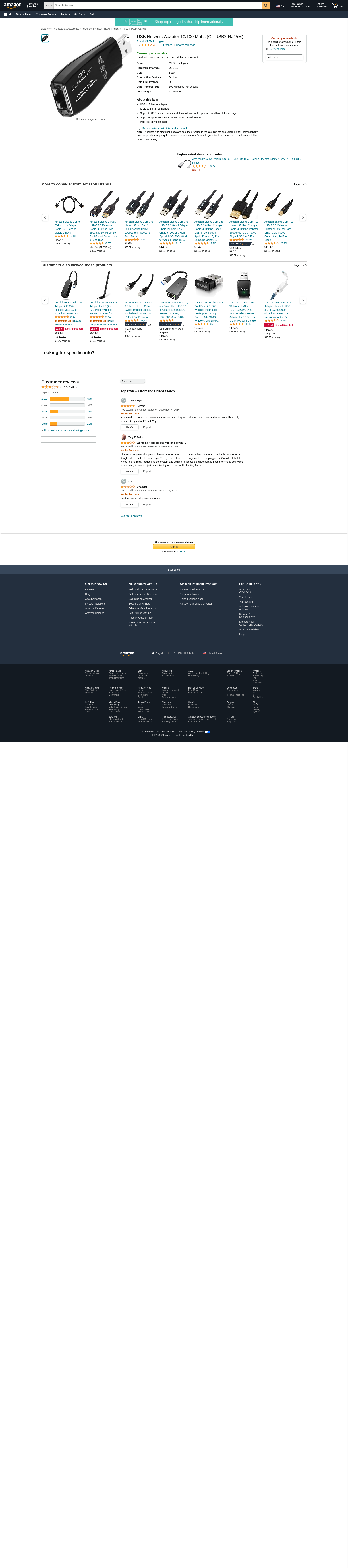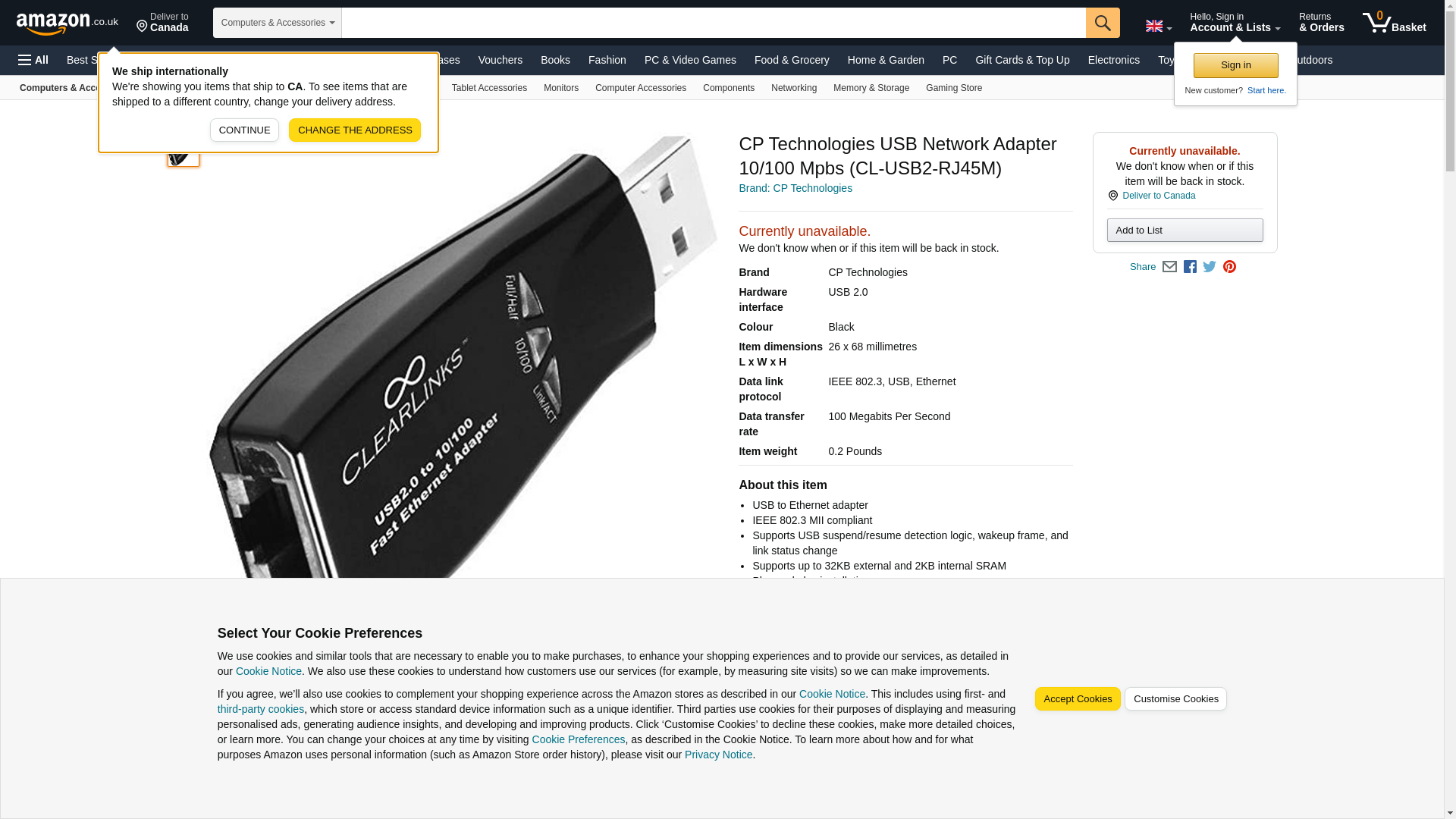 CP Technologies USB Network Adapter 10/100 Mpbs (CL-USB2-RJ45M)