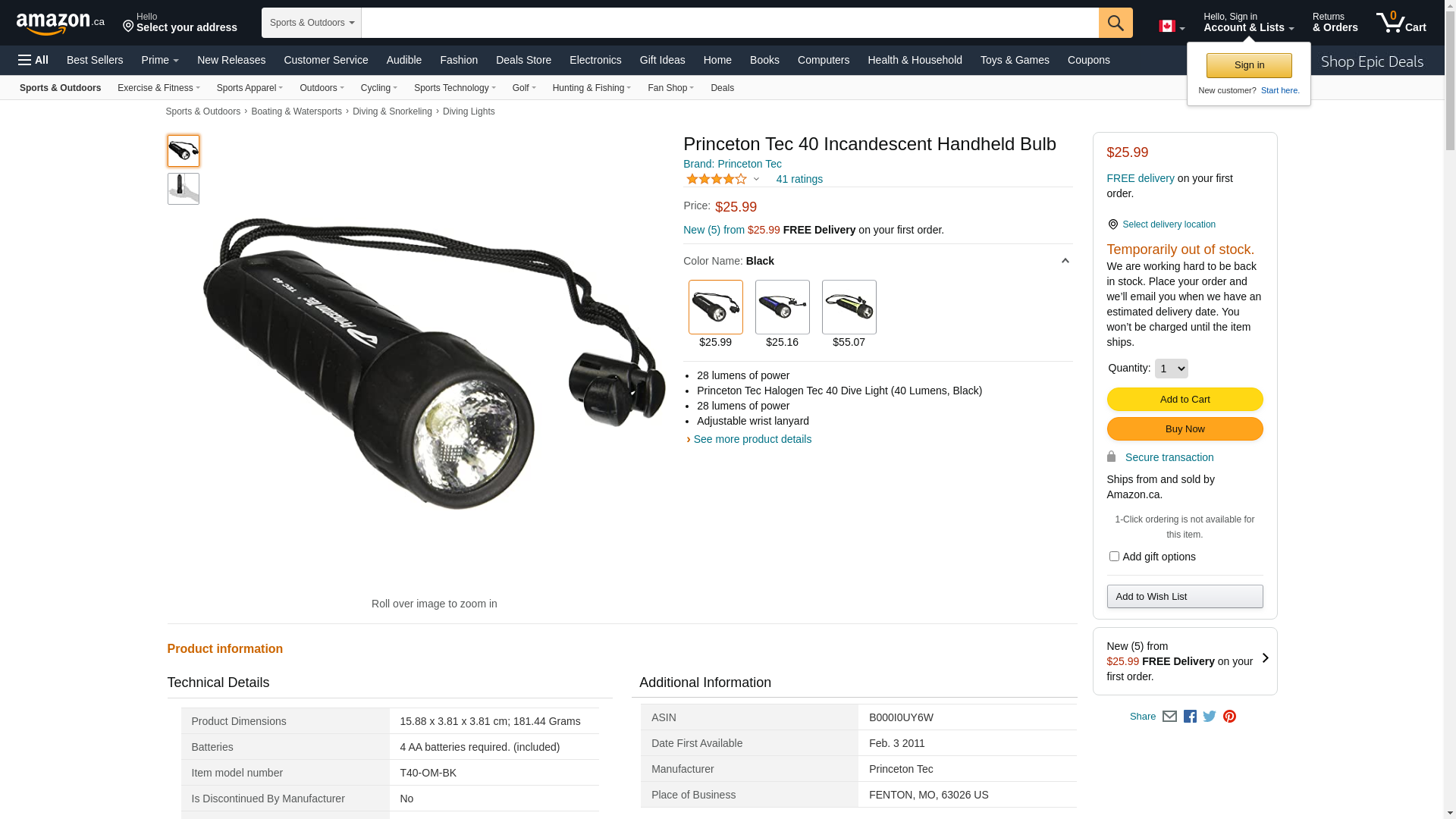 Princeton Tec 40 Incandescent Handheld Diving Halogen Flashlight — CampSaver