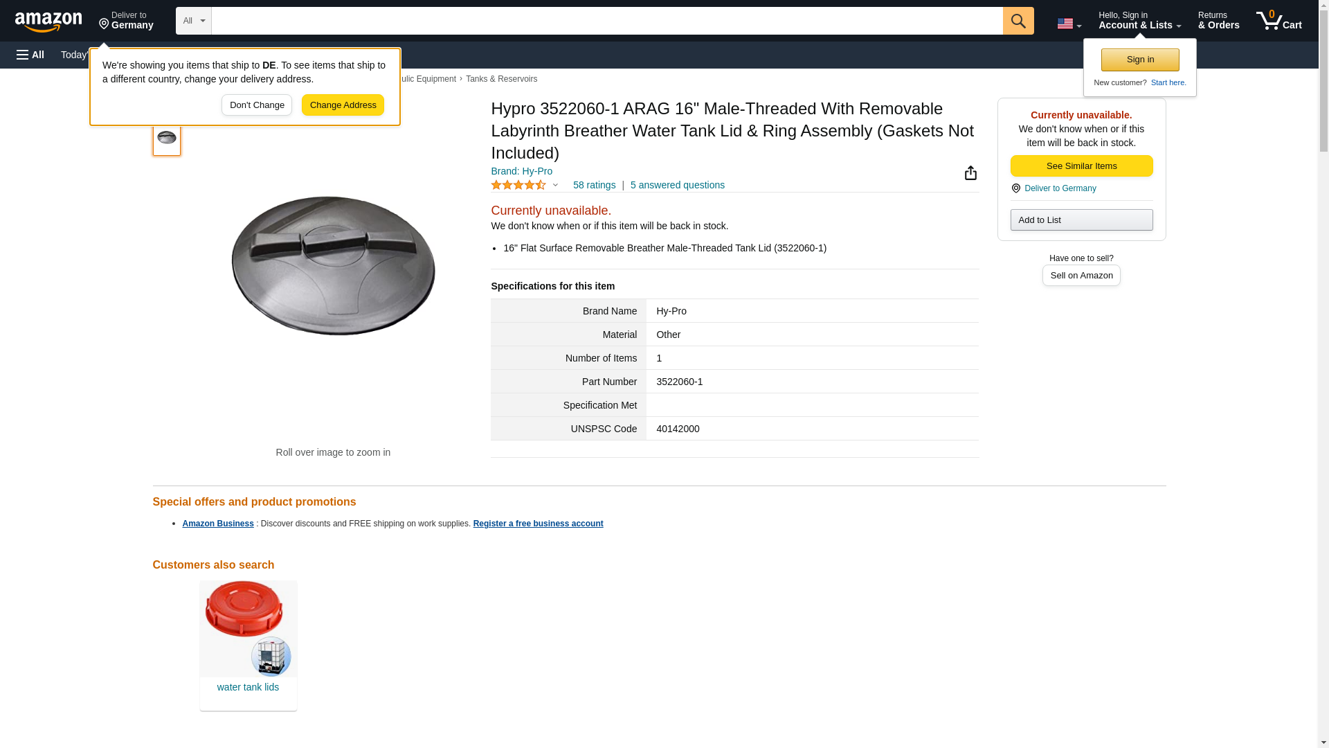 - 16" Flat Surface Removable Breather Male-Threaded Tank Lid (3522060-1)