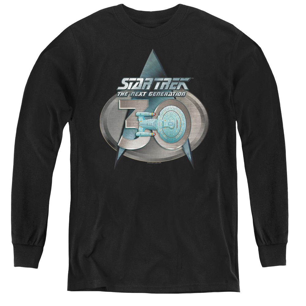 Trevco CBS2253-YL-1 Star Trek & TNG 30 Logo-Youth Long Sleeve Tee, Black - Small