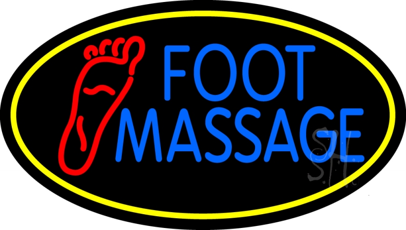 The Sign Store N105-13061 Blue Foot Massage With Yellow Oval Neon Sign, 17 x 30 x 3 in.