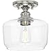Aiken Collection 1-Light Clear Glass Farmhouse Flush Mount Light Brushed Nickel
