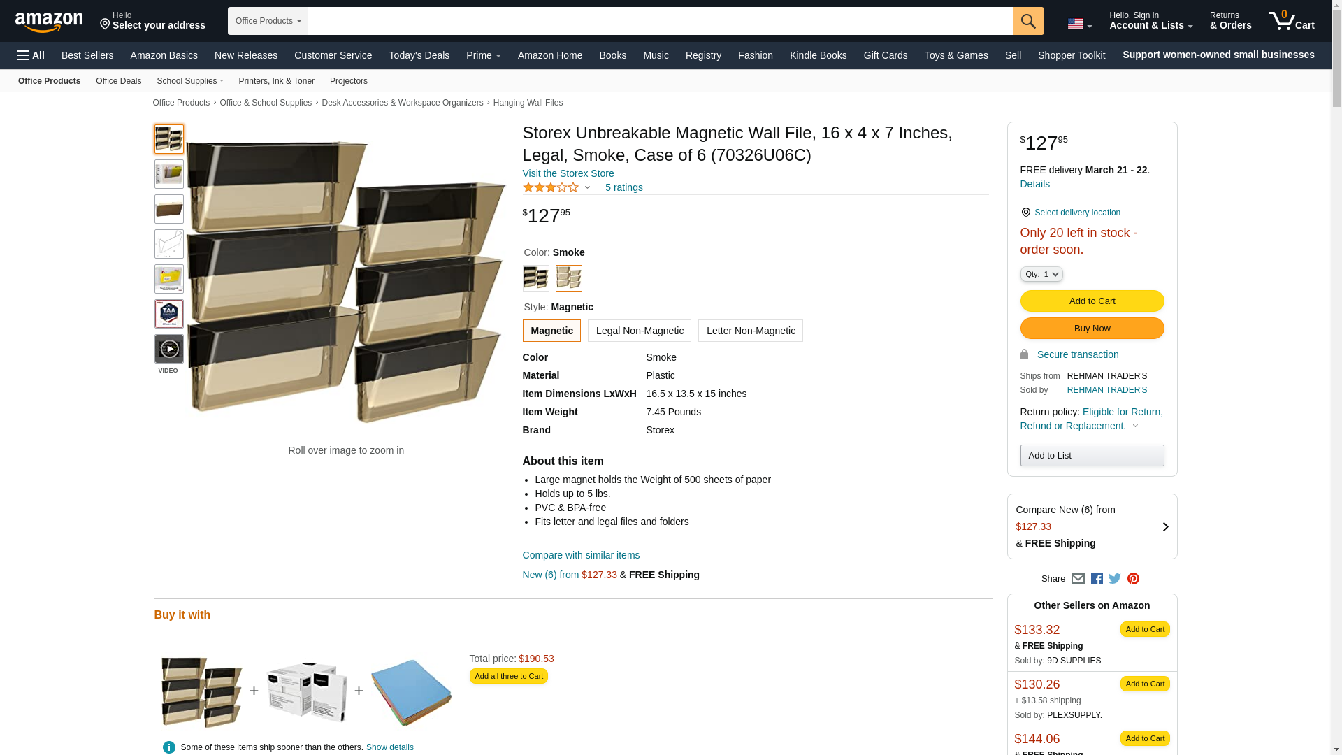 Storex FILE,WALL,LGL,SMK 70326U06C USS-STX70326U06C - SIM Supply