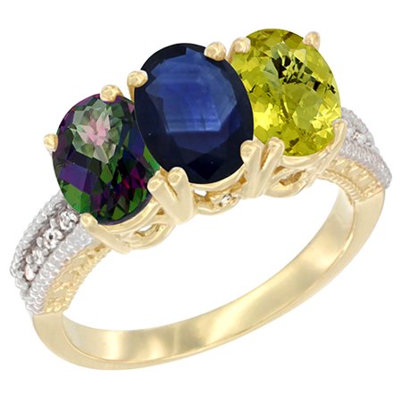 This Gorgeous Ring is made of solid 10K Gold set with All-Natural Gemstones and accented with Genuine Brilliant Cut Diamonds. Three Different exciting colors to choose from! Available in sizes 5 to 10 with half sizes. Placement arrangement of gemstones may be requested. Just send us an email with yo
