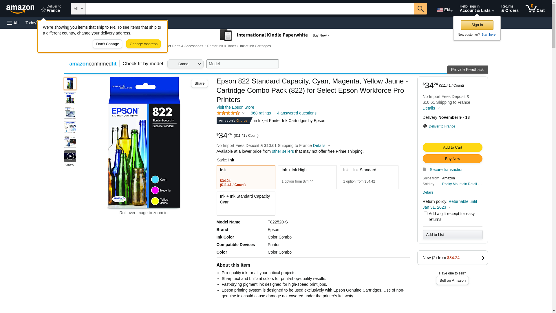 Epson T822 3 Pack Standard Capacity Multi Ink Cartridges T822520-S - Best Buy