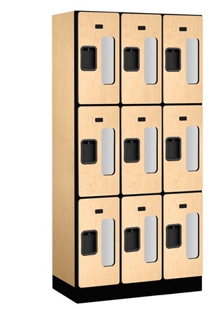 Salsbury Industries 3-Tier See-Through Designer Wood Locker with Three Wide Storage Units, 6-Feet High by 18-Inch Deep, Maple