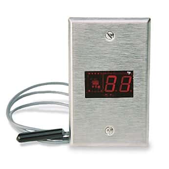 | Feature | <b>Price For:</b> Each <b>Temp. Range (F)</b>: -40 Degrees to 99 Degrees <b>Temp. Range (C)</b>: -40 Degrees to 37.2 Degrees <b>Sensor Type</b>: Semi-Conductor <b>Display</b>: LED <b>Includes</b>: Sensor <b>Features</b>: Stainless Steel Face Plate, Data Hold <b>Item</b>: Switch Plate Thermometer <b>Mounting</b>: Surface <b>Sensor Material</b>: Vinyl <b>Height</b>: 4-1/2" <b>Standards</b>: NSF Approved <b>Width</b>: 2-3/4" <b>Accuracy</b>: +/-1 Degrees |