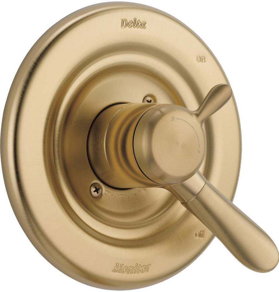ADA Compliant: Yes. Control Type: Dual Control - Pressure Balance. Diverter Included: Without Diverter. Drain Included: No. Escutcheon Dimensions: 7". Finish: Bronze. Handle Material: Metal. Handle Style: Lever. Handles Included: Yes. Includes: Valve trim, handle. Made in: U.S.A.. Manufacturer Finish: Champagne Bronze. Manufacturer Warranty: Limited Lifetime. Manufacturers Collection Name: Lahara. Mounting Location: Wall Mount. Number of Handles: 1. Other Features: MultiChoice Universal Valve allows for future upgrades without altering plumbing, Monitor feature protects from sudden changes in hot or cold water pressure, Brilliance Finish is designed to not corrode, tarnish or discolor. Pressure Balanced: Yes. Requires: Rough in Valve. Rough In Valve Included: No - Trim Only. Rough In Valve Required: R10000-UN. Scald Guard: Yes. Temperature Control: Yes. Thermostatic: No. Type of Faucet: Shower Valve and Trim. Valve Type: Volume & Temperature Control Shower Valves and Trim. Water Volume Control: Yes. WaterSense Certified: No. Weight: 1.94.