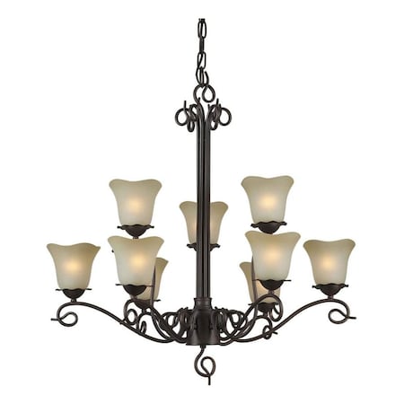 Forte Lighting 2363-09-32 9-Light Transitional Chandelier, Antique Bronze Finish with Shaded Umber Glass, 32" x 32" x 30"