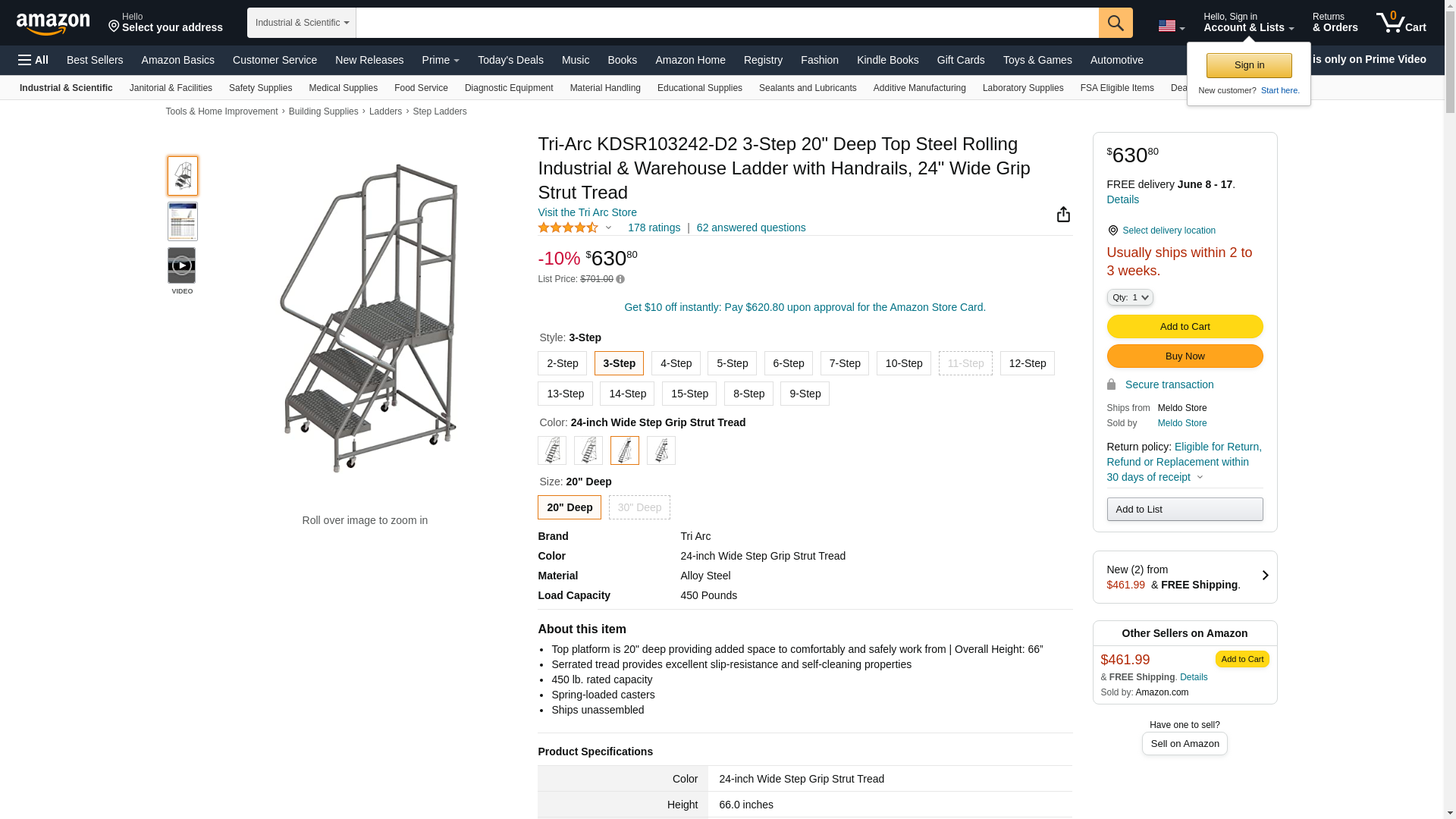 Tri-Arc KDSR103242-D3 3-Step 30" Deep Top Steel Rolling Industrial & Warehouse Ladder with Handrails, 24" Wide Grip Strut Tread